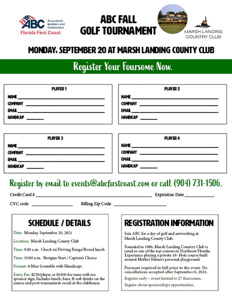 Rescheudled Rain Date: Join ABC for the Fall Golf Tournament. Inquire about available sponsorships to [email protected]. Foursomes are sold out.